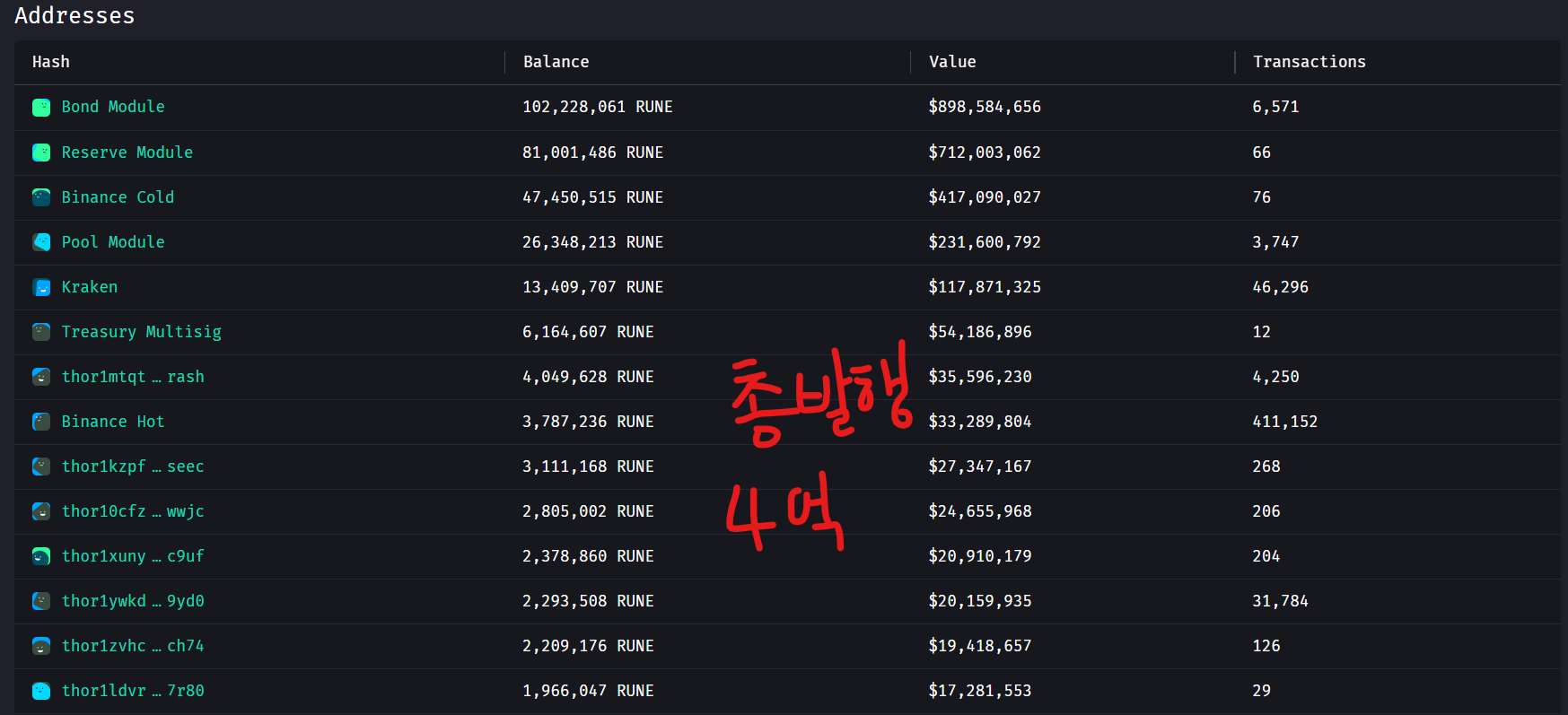 총 발행량이 4억인걸 감안해서 보면 되겠습니다.