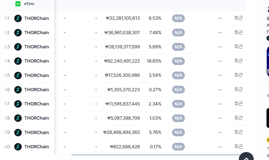 THORChain (RUNE) 가격, 차트, 시가총액 | 코인마켓캡